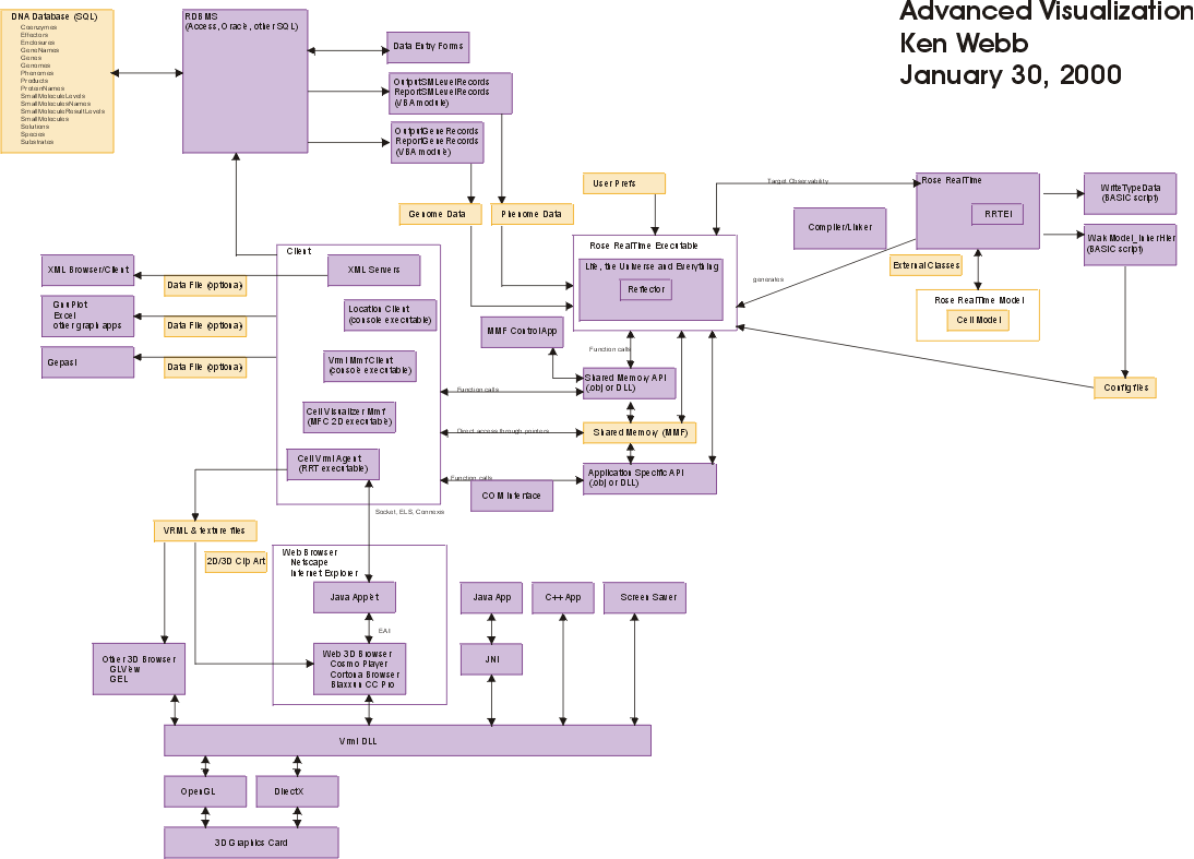 3D opens up an infinite range of visualization opportunities. You can create geometry, textures and colors at run time, continuously update the scene at run time, create 3D geometry using a variety of 3D tools from freeware to very expensive, or purchase libraries of 3D images from companies such as Viewpoint Datalabs. At run time you can stitch together 3D information from all of these sources, freely combining canned images, movies and sounds, with 3D descriptions generated on the fly.